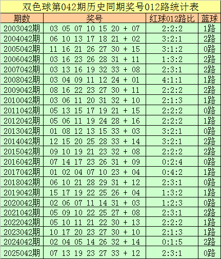 蓝球分析:去年第042期蓝球奖号为12,开出0路蓝球,今年同期注意0路蓝球继续开出,参考蓝球06。